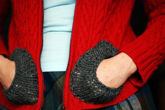 Ben hırkada cep ararım devamlı ellerim hırkanın yanlarına gider satın alırken de özellikle cepli hırka ararım tabi her zaman beğendiğin modeli cepleri olmuyor ama artık bu sorun değil bu çalışmayla her yere hazır hırka, kazak, süveter bilimum ıvız zıvıra cep örebilirsiniz. Özellikle çcukların kıyafetleri için süper bir çalışma. Yalnız bu fotoğraftaki çalışmaları sunan kişi bu uygulamanın şemasını 5 dolara satıyormuş ama kıt örgü bilgimle şunu söyleyebilirim; kazağın üzerinden göz tutup 4 – 5 şişle merkeze doğru örülüp uygun sırada örünce kesiliyor.. Tahminim bu, başka fikri olan varsa lütfen yazsın