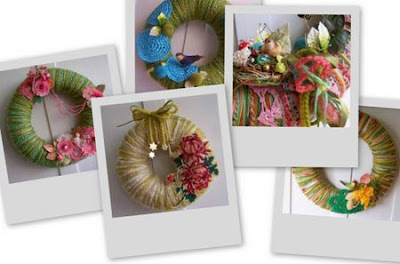 Çok az bir maliyetle de aksesuar yapımına kanıttır herhalde bu konu.Eski yün ve parça danteller hatta dal budaklar kurdeleler boncuklar vs vs kulanarak harika bir kapı süs koleksiyonu oluşturmuş Katie Runnels ablamız.Sizde yapabilirsiniz.Sayfasını çok fazla gezemedim ama ben bunu nasıl yapardım diye düşündüm ve ; kalın bir kartonu yuvarlak şekilde keser üzerine muntazam elyaf silikon koyar ve bezlerle sarardım yassı bir simit formuna sokar ip ve diğer malzemelerle kapatır süslerdim gerisi zaten size kalmış buraya bendeki eski bir kaç fotoğrafını ekledim burası ise flickr sayfası..