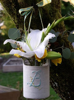 Değişik sıcacık kumaş aksesuarları sevenler için harika bir tasarım. Vazolar bu çalışma ile sadece masa üzerinde değil her yerde, özellikle düğünlerde sandalye arkasına, dış mekan dekorunda ve kış bahçelerine ayrı bir hava katacak cinsten. Üzerine işlenen harfler de ayrı bir özellik katmış. Bu kumaş vazoların nasıl yapıldığını merak ediyorsanız Tık tık ..
