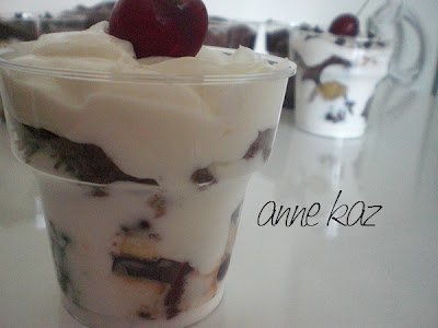 En sevdiğiniz favori kekinizi yapın küçük küçük karelere bölün, istediğiniz krem şanti ve ya istediğiniz pasta kremasını hazırlayın. Muzlu, kakolu, fındıklı pudingler de çok lezzetli olur. Hazır satılan plastik bardağın dibine bir kaşık puding ve ya krema koyun üzerine kek isterseniz muz , çilek ve ya fındık fıstık ya da damla çikolata ekleyip bir kaşık krema ve ya puding ekleyin. Biraz daha kek koyup yine puding ve ya krema ekleyin üzerini krema ve ya meyvelerle süsleyin geceden hazırlarsanız daha lezzetli olur. Bardak sizin içine arzu ettiğiniz malzemeyi katabilirsiniz Dolapta bir süre bekletince de tüketilebilir afiyet olsun.