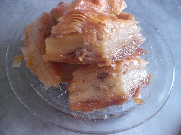 E o kadar yedik içtik kilolarımıza kilo kattık fotoğraflamasak olmazdı, ilk el açması baklava yani baklava yufkası falan değil bildiğiniz el açması baklava hani hamuru yoğurulan falan niye böyle üstüne basa basa söylüyorum çünkü baklava yufkası ile yapılan baklavayı ısrarla ben yaptım diyen ev sahipleri vardı :)) Bol glikozlu baklavalar kadar iğrenç değildi tabi ama yine de el yapımı değil. Yukarıda gördüğünüz servisi öyle pek mükemmel olmayan baklava ise gerçek bir baklavadır onunda başına olmadık işler gelmiş ama neticede güzeldi.