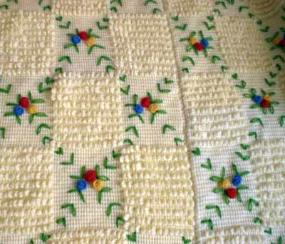 Bu kızkardeşimin bebeği için ördüğü battaniye, tunus işi denilen tek şişle ördü kareli bir motifle kabartma uyguladı.Çok basit ve bilinen bir iş sanırım üzerine rokoko ile gül yaptı arkasına ince polardan astar dikip kenarlarını tığladı sıcacık bir battaniye oldu ayrıntılı fotoğrafları burada