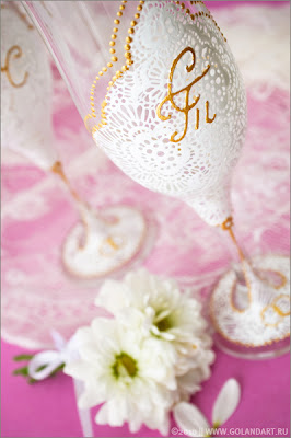 Cam boyası kullanılarak yapılan bu bardakları Rus sitelerinde sık sık rastlıyorum. Nasıl yapıldığını daha önce görmüştüm yapılmak isenen desen bir kağıda çiziliyor ve bardağın içine bantlanıp dışaırdan cam boyası ile çiziliyor. Tabi bu yeni başlayanlar için usta sanatçılar gördüğünüz gibi ince dantel desenli bardakları gözü kapalı yapıyor. Özellikle düğün davetlerinde gelinlerin damatların kullandığı kadehlerin üzerine baş harfleri ile beraber dantel motifleri çiziliyor ve bir hatıra olarak saklanıyor. Bizde de mutfak ve hatta salon vitrinlerinde özel günlerde kullanılmak üzere çeşitli bardaklar üzerine benzer tasarımlar yapılabilir. Cam boyası oldukça dayanıklı bir boyadır. Cam boyası ile yapılan benzer çalışmalar bulaşık makinasına girmez ve elde nazikçe yıkanabilir.