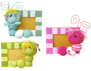 Çocuk odaları için çok güzel düşünülmüş bir çerçeve.Kartondan yada ince tahtadan boyanmış çerçeve üzerine kumaşlardan yapılmış tırtıllar yapıştırılmış.Yuvarlak kumaşların içini silikon ile doldurup yuvarlak toplar yapmışlar birleştirip ağız göz işlenmiş renkli tellerden anten yapılmış saç ile birlikte kafaya yapıştırılmış..İlginç bir çalışma burada kalıbı ve ayrıntıları var..