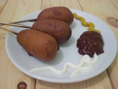 Aslına bakarsanız hot dog corn dog bunlar hoş isimler değil:) Fakat lakin adamlar yapmış beğenirsiniz yada beğenmezsiniz.Çocuklar uzun zamandan beri istiyorlardı bütün malzemeleri bir arada görünce yapayım dedim.Esasında uzun sosisle yapılır ve inanın bir sosis normal bir insanı doyurur yani doyurması lazım..Gelelim American özentisi yemeğimize hoş bana göre yemek de sayılmaz ya neyse..Orjinal tarifinde şeker de var.Onların ağız tadı şekerli biftekler elmalı yahniler üstü tatlı soslu hindilere çok alışkın fakat ben bizimkilerin yemeyeceğini bildiğim için ingilizce tarifi kendime göre yorumladım.