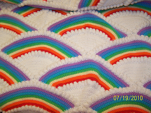 El örgüsü bebek battaniyesi gibi yoktur ağırlık vermeden incecik yünüyle bile bebekleri sıcacık, sarar kış aylarında anne olmaya hazırlanan kuzen bu aralar fellik fellik değişik bir bebek battaniyesi modeli arıyor daha yeni konuşmuştuk dün bu modeli gördüm gökkuşağı şeklinde bebek battaniyesi cıvıl cıvıl pop corn işinden bulutları bile var nasıl yapıldığı konusunda sitede ayrıntı verilmemiş bu iki fotoğraftan ibaret zaten ama yine de fikir fikirdir becerikli hanımların elinden hiç bir şey kaçmaz.