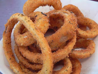 Sophrano dizisinin son bölümünde iştahla yedikleri minik halkaları evde denedim.Tarifi hiç araştırmadım.Tahmin usulu yaptığım söylenebilir.Sonuç ise gerçten çok değişik ve güzel bir tat.Biraz soğanlı cipsleride andırıyor.Soğan kızartmasını yapmak için..Bizim ekmek balığı dediğimiz hamurlu bayat ekmek kızartması için kulandığımız hamur tarifine benzer bir karışım yaptım.2 yumurta biraz süt tuz baharat un karışımından akıcı bir hamur yaptım.