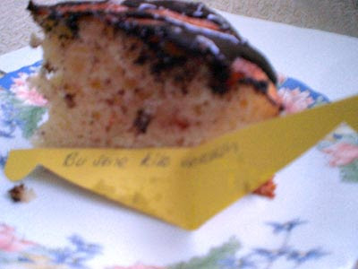Her türlü kek pasta olur ben portakal şekerlemeli çikolatalı bir kek yaptım..Renkli kağıtlara ‘bu sene kilo vereceksin’ ‘hayırlı bir kısmetin var’ ‘Kayınvaliden size gelecek’ :) gibi cümleler yazdım ikiye katlayıp süslenmiş hazır kekin dilim olacak yerlerine batırdım.Bana bu sene kilo vereceksin çıktı külliyen yalan ben böyle kekler yaptıkça kilo falan veremem dedim.Özellikle çocuklar çok sevecektir okul ve arkadaşları ile ilgili cümleler bilmeceler vs yazılabilir..
