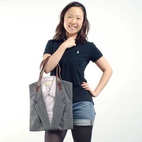 Gömlek ceket adeta takım elbise üstü gibi duran bu çanta bir geri dönüşüm projesi ilginç olmuş yani koluma takıp gezer miydim bilmiyorum ama yine de hoş kocanızın babanızın uyuz olduğunuz artık içine giremedikleri takımlar varsa ..hani düşünün derim :)) Ayrıca kaynakta değişik geri dönüşüm çantalar görebilirsiniz..kaynak