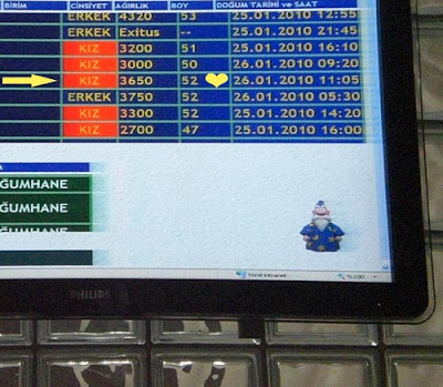 Çocuklar sömestir tatiline girince hemen kendimizi dışarı attık. İlk durak annemler, kardeşimin karnı burnunda eşi gittiğimiz günün sabahı sancıyla hastaneye kaldırıldı Uzuunca bir bekleyişten sonra yukarıdaki işaretli olduğu üzere 3.650 gr ağırlığında 52 cm boyunda sağlıklı bir bebeğimiz oldu. O yüzden bir kaç gündür oradaydık ..Dünya kadar fotoğraf çekildi ama diğer bilgisayarda kaldığı için yayınlayamıyorum.. ama şu kadarını söyleyim aynı ben:P en azından ince uzun parmakları.. :))