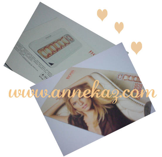 Hugo Boss bu yaz yeni bir bayan parfümü piyasaya sürmüştü. Sienna Miller parfümün yüzü olarak reklamlarında yer almıştı işte o parfümün denemek ister misiniz? Merak ettiğim bir kokuydu tesadüf eseri sitelerinde bütün dünyaya free sample gönderdiklerini gördüm formu doldurdum ve şık bir kartla beraber minicik örnek posta kutuma geldi.