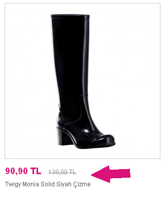 Mesela aklımda yağmur çizmesi var mail kutuma da bu marka çizmelerde yüzde 40 indirim sunulduğuna dair mail geldi baktım fiyatlarına, google ufak bir aramadan sonra aslında en hesaplısının indirim sitesi değil normal alışveriş sitesinde olduğunu gördüm aynı olay bir kaç daha başıma geldi artık iyi niyetli kötü niyetli bilmiyorum zaten site adlarını vermiyorum sadece karşılaştırma amacıyla fiyat farklarını gösteriyorum büyük resimlerdeki ürünlere birde artı kargo ücreti olduğunu da belirteyim. Küçük resimlerdeki ise normal alışveriş sitesi, bu hesapla ortalama 12- 14 tl indirimli site daha pahalı kalıyor..ee devir ekonomi devri..