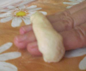hamuru eşit ölçüde almak için avuç içinde sıkmak güzel bir yöntem