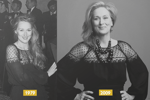 2 fotoğrafa baktığım zaman, soldaki Merly Streep'in yüzünde tazelik var, ümit var, toyluk var, gelecek var..Sağdakinde ise olgunluk var, tecrübe var, yaşanmışlık var, geçmiş var..