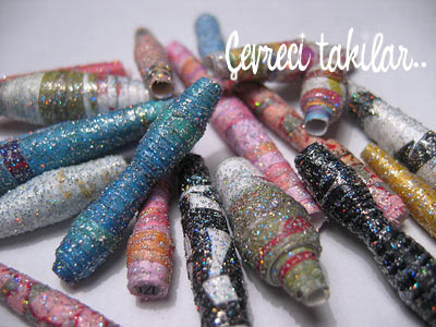Kağıt işlerini herzaman çok sevdim bir çok kez bununla ilgili konuda yazdım,fakat bu çalışma bir başka çünkü bir kere takı olarak çok rahat kullanılabiliyor malzemesi çok ucuz ayrıca kızların aldığı af caflı simli ojeler böylelikle bitmiş olacak :)