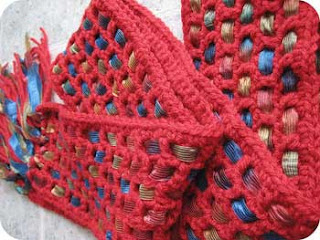 Çok iyi örgü bilmiyor ama yinede değişik havalı bir şey yapmak istiyorsunuz.Yaparken de dünyanın parasını egzantrik iplere harcamak istemiyorsunuz.İşte tam size göre bir model.Tığ ile zincirler dolgular yapıp oluşan deliklerden kurdeleler geçiriyorsunuz.Artık İster şal ister çanta ister atkı yapabilir kurdeleleri ile yaptıklarınıza hava katabilirsiniz
