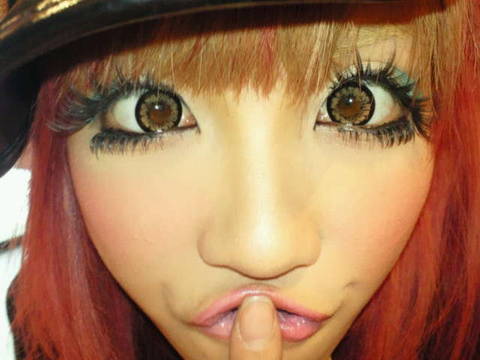 Japon stili giyim tarzı ve makyaj akımı dünyayı sardı, iri lensler takma kirpikler, bol fondotenli pudralı makyajlarla porselen gibi bir surat ve animemsi gözler genç kızlar arasında çok moda tek göz kapaklı genç kızlar bile buradaki yöntem sayesinde rahat rahat makyaj yapıp kirpiklerini takabiliyorlar. Yukarıda ise ‘ küçük gözler makyajla nasıl daha iri gösterilir’ in çok güzel bir simgesi. Makyajla da olsa çok tatlılar..seviyorum Asyalı kızları..