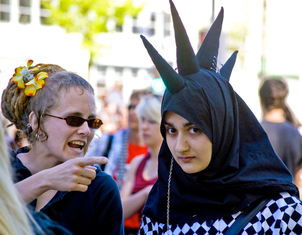 cok sacma. bir musluman kiz asla boyle yapmaz. bu gercek bir resim degil. resmen poz vermis. eminim disarida boyle degil. bunu muslumanlari kucuk dusurmek icin yapmissiniz. yoksa kim hayatinda boyle birseyle karsilasti soylesin de bilelim. nokta.