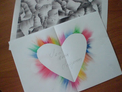 Kalpli için; Öncelikle kart yapacağınız kağıdı yada kartonu hazırlayın.Ben kalp şekli yaptım her türlü şekil olur. Ajandamdan bi sayfa kopartıp kalp şeklinde kestim, kenarlarına pastel boya ile dolgun bir şekilde boyadım renk renk yaptım ama tabi siz istediğiniz rengi yapabilirsiniz. Hazırladığım temiz kağıdın üzerine koyup bir elimle kağıdı sıkıca bastırıp diğer elimle pastel boyayı parmağımla kağıda sürdüm bastıra bastıra yaptımki renk ışınları uzun ve geçişleri güzel olsun burada boyanan kabi kaydırmamak çok önemli.Her tarafını yapınca kalbin izinin öylece çıktığını göreceksiniz..
