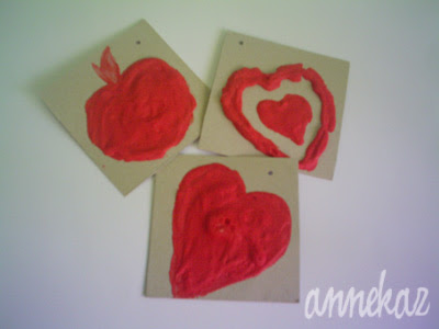 hepsini karıştırıp tortu kalmayacak krep kıvamında bir hamur yapıyoruz.Fırına gireceği için kalın kağıt yada kartonun üzerinde istediğimiz şekillerde fırça ile boyamalar ve süslemeler yapıyoruz. (biraz bolca olursa daha güzel olyor) Fırında yada mikrodalgada çok az mesela 1 dk gibi süre kabarana kadar ısıya maruz bırakıyoruz .Ben bu çalışmayı tost makinasında yaptım :) rengarenk olunca çok daha güzel görünecektir.Burada daha ayrıntılı fotoğraflar var