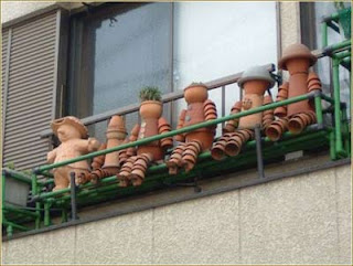İster bahçe olsun ister balkon gönül istiyorki en güzeli olsun kediden köpekten ördekten heykeller oluyor bazılarında, bazılarında minik melekli bebekli fiskiyeler ama hiç bunlardan gördünüz mü sadece saksılar kullanılarak yapılmış bahçe balkon heykelleri bir bakan dönüp bir daha bakar o kadar hoş ve enteresan. Temelde altındaki delikten kalın sicimler ve düğümler atılarak yapılmış.