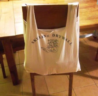Mutfaktaki sandalyelerde kullanılabilecek değişik bir çanta fikri.Yapmak içinse eski bir tişört kullanmışlar..