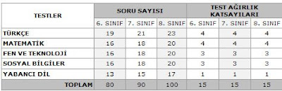 6’ncı sınıflarda sınav süresi 90 dakika. 7’nci sınıflarda sınav süresi 100 dakika,8’nci sınıflarda sınav süresi 120 dakika. (OKS) Resimin üzerine tıklarsanız daha okunur olur…