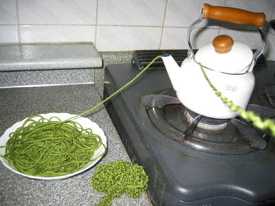 Bu uygulamayı bir japon sitesinde gördüm malesef çeviremedim ama sanırım durum göründüğü gibi sökük ip çaydanlık buharı ile düzeltiliyor :) pratik bilgi diye buna derim