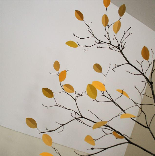 Kuru dallar üzerine ne eklenirse eklensin evlerde çok şık duruyor, ama sonbahar renkleri daha bir yakışmış eksik parçası tamamlanmış gibi olmuş.kuru dallar renkli kağıtlar ve silikon ve ya uygun bir yapıştırıcı bu güzellik için yeterli..