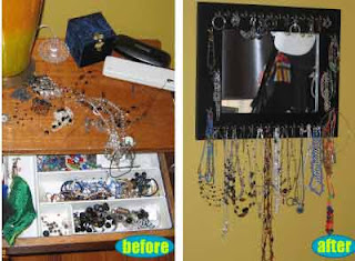 Salkım saçak duran birbirine karışan takılara böyle düzen getirebilirsiniz.Özellikle kızların odalarına çok uygun yapımı da çok basit..