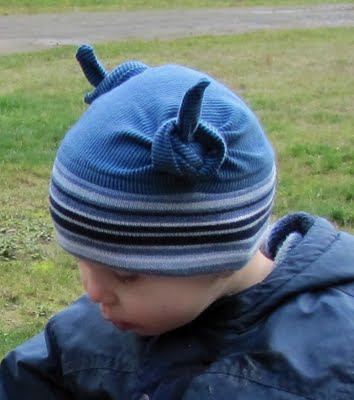 Örgü şapkaya alternatif arayanlara eli örgüden çok dikişe yatkın olanlara özel bir çalışma. Uzun kulaklar böyle düğümde oluyor yapımında geri dönüşmeye can atan tişöert ve triko kullanılmış..Yapımı ise