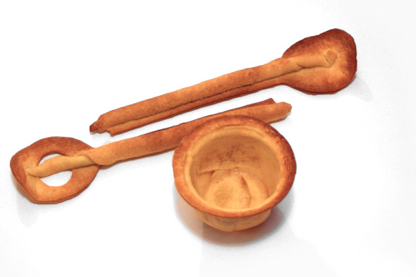 Sofrada ilginç ayrıntıları sevenler için gerçekten çılgınca bir seçenek , sofrada kullanılan salata servis kaşıklarını ve sos tabağını yenebilecek şekilde yapmışlar. Yapan kişi de tüm ayrıntılarının fotoğrafını çekip yayınlamış, Hamur olarak meşhur Fransız Pate Brisee kullanılmış gerçi hazır alınmış ama yine de Pate Brisee, siz tart hamuru da kullanabilirsiniz hatta bana göre aızıcık margainle beraber yoğrulmuş mantı hamuru bile olur. Nasıl yapıldığı ve hamurun kalıbı kesimi tüm ayrıntıları burada …